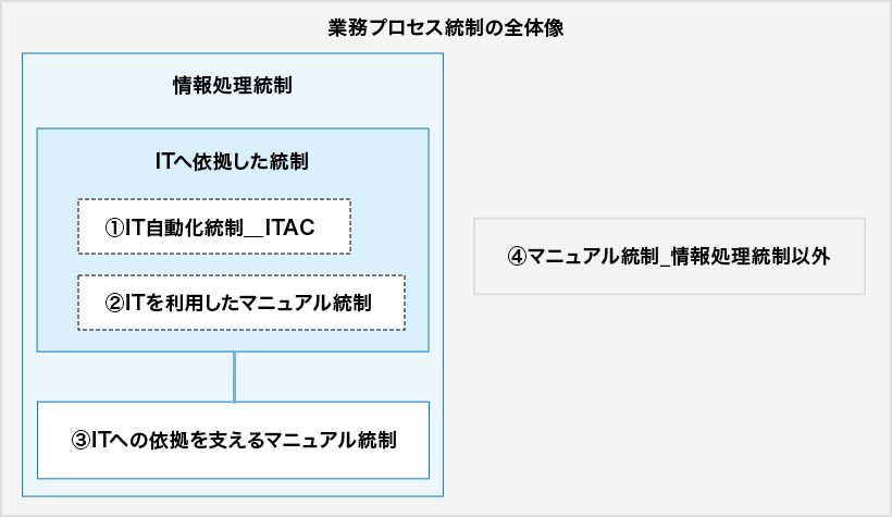 ・② ITを利用したマニュアル統制:人がチェックするが、元データとしてシステムのアウトプット(帳票など)を利用するもの。